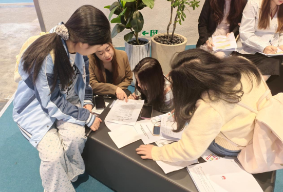 赴港参观展览之前,同学们自行组成了3-5人的调研小组,并通过展览会官网查询参展企业信息,结合课程重点与职业发展兴趣,制定观展调研计划。在观展当天,在周敏仪老师的指导下,同学们带上了课程组精心设计的调研记录表和访谈记录表,分赴各自选定的展位,开展深入的参展调研。他们与参展企业面对面交流,深入了解市场行情,捕捉科技发展新形势。在实践中,同学们不仅亲身体验了参展工作流程,还积极探索学习了参展策划、展位设计等关键知识和技能。他们仔细观察展位的布局设计、灯光音响的搭配运用,用心聆听参展商的讲解介绍,将课堂上学到的理论知识与实际工作紧密结合,实现了知识的转化与升华。