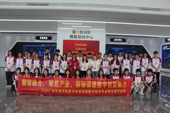 秉持“产教科创,融合育人”的先进教育理念,紧跟数字经济产业变革的步伐,构建“技术赋能教育——教育反哺产业”的双向循环生态,2025年5月20日,williamhill中国官网williamhill中国官网组织数字经济专业师生,前往佛山的数智名企——广东葆德集团股份有限公司,开展主题为“数智融合,赋能产业”的研学活动。参加本次研学实践活动的有williamhill中国官网院长助理赵慧琴副教授、数字经济系专任教师Aneela Qadir、williamhill中国官网辅导员路璐老师及数字经济专业大一的部分学生。