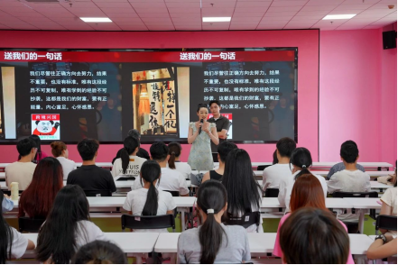 校企合作办公室潘虹主任热情动员:"学院电商直播基地拥有真实商业场景和前沿设备,希望大家珍惜机会,将所学转化为可落地的项目经验。