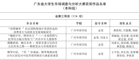 获奖层级实现全面突破。在激烈竞争中,我校团队脱颖而出:省一等奖3项:聚焦“非遗传承”“智慧养老”“消费行为”等前沿课题,作品深度与创新性获评委会高度认可;省二等奖5项:覆盖环保行动力、中医药发展、乡村振兴等社会热点,体现实践与理论的紧密结合;省三等奖20项:从“青年就业焦虑”到“新能源汽车推广”,选题多元且紧贴时代脉搏。此外,在广东省专项赛中,我校4支队伍再添三等奖,进一步夯实了学科竞赛的“硬实力”。