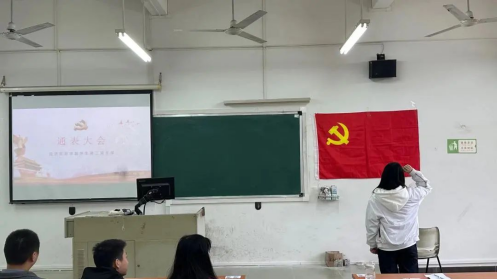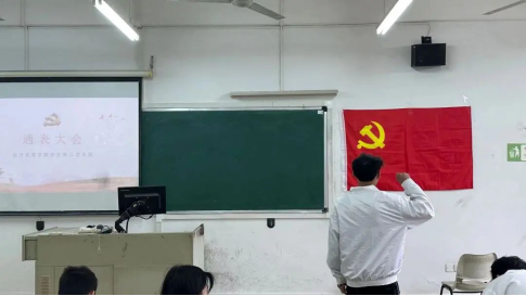 支部书记石立老师代表支委会报告考察情况:支委会认为陈楚怡等4名同志已基本符合一名中共正式党员条件,可以按期转为中共正式党员。