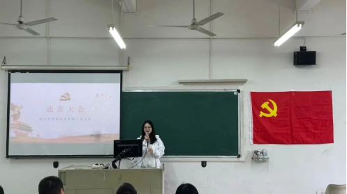 最后,经济贸易学院学生第二党支部书记石立老师进行发言。石立老师向陈楚怡等4名同志按期转正表示祝贺,并对各位党员同志寄予期望:让思想和行动时刻保持一致,将党员带头精神内化于心、外化于行。从自我做起,从身边小事做起,起到先锋模范的带头作用!
