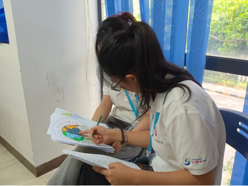 面对一幅幅充满童真的绘画,队员们根据“色彩搭配、画面构图、画面内容”等评分标准对每幅作品进行认真评分,选出富有创意的作品并为每位积极参与的小朋友颁发礼品。