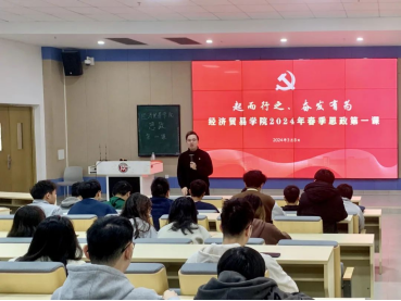 2024年3月5日,经济贸易学院李广明院长在广州校区励志楼C402为经济贸易学院2021级学生讲授以“踔厉奋发,学好本领,积极投身高质量发展的广东实践”为主题的思政第一课。
