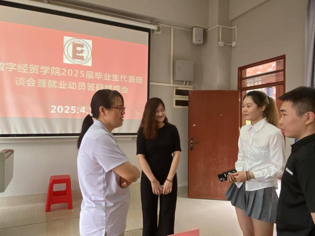 本次举办的座谈会展现了学院对即将毕业的学生们的深切关怀,它为同学们提供了一个宝贵的交流机会,而且搭建了一个促进个人成长和发展的平台。通过这样的活动,我们深信,在学院的不懈支持和无私帮助下,2025届的毕业生们将能够带着他们的梦想,勇敢地迈出步伐,迈向充满挑战的未来职场。
