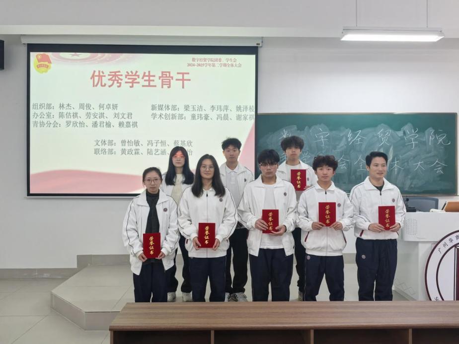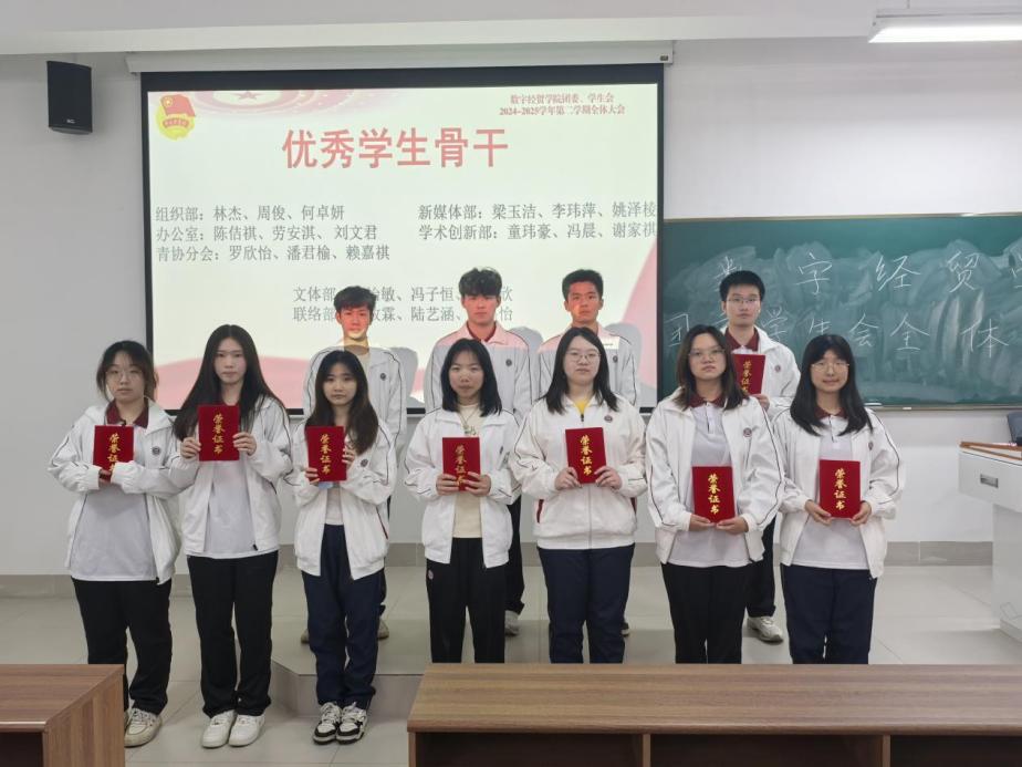 会议第二项议程是对优秀学生骨干进行表彰,各部门共21名同学获此殊荣。他们以出色的表现诠释了责任与奉献,为学院英国威廉希尔公司网站注入了活力与激情。在合影环节,获奖同学们手持证书,脸上洋溢着自豪的笑容,台下的同学们则报以热烈的掌声。这一环节不仅让获奖者感受到认可与鼓励,更激发了全体学生骨干的工作热情,为后续英国威廉希尔公司网站的开展注入了新的动力。
