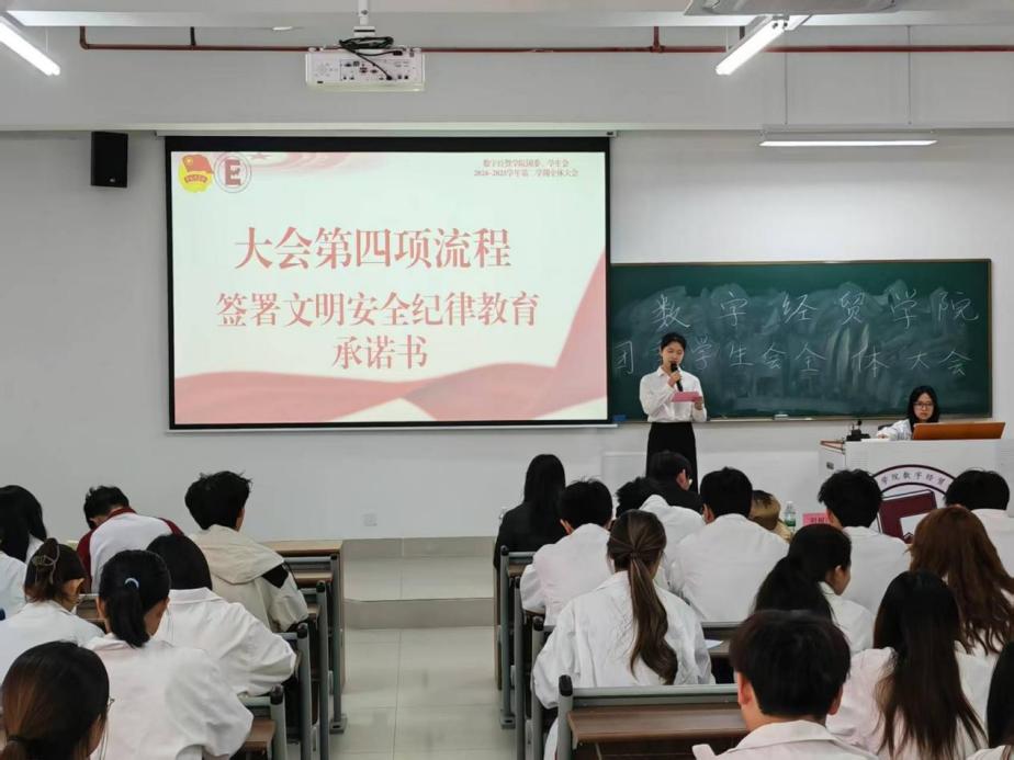 会议第四项议程是全体学生骨干签署《文明安全纪律教育承诺书》,这一庄重的环节旨在强化学生骨干的纪律意识,发挥模范带头作用,共同营造安全文明的校园环境。这一环节的开展,进一步强化了学生骨干的责任意识与纪律观念,为维护校园安全稳定、促进优良学风建设奠定了坚实基础。