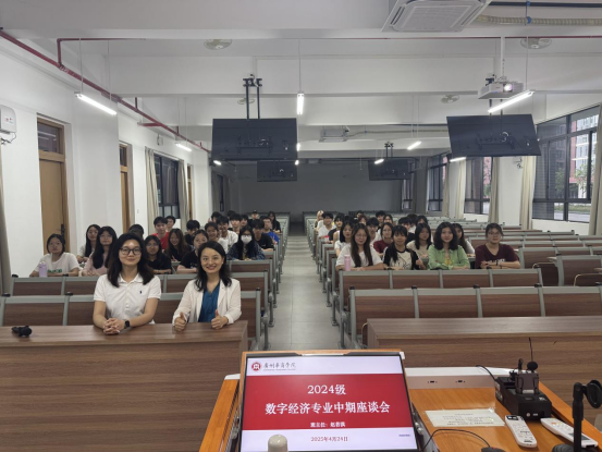 第一场座谈会由23级数字经济1班、数字经济系副主任彭珍、24级数字经济专业班主任赵若淇老师参加,在轻松愉悦的氛围中展开。
