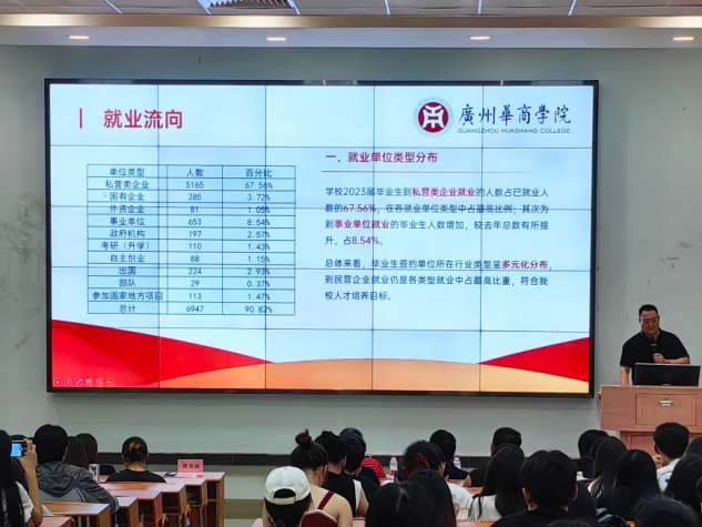 座谈会伊始,学校就业指导中心曾龙威主任围绕学校及各二级学院2023届毕业生的“毕业去向落实率,就业流向,就业层次,就业质量”等方面逐一进行了详细的介绍和分析。他建议毕业生们要合理设定就业期望,并希望各位毕业生积极主动参加企业宣讲会,从中了解企业相关工作内容和专业类型,认真阅读招聘公告,掌握就业政策要求,为个人就业做好充分准备。