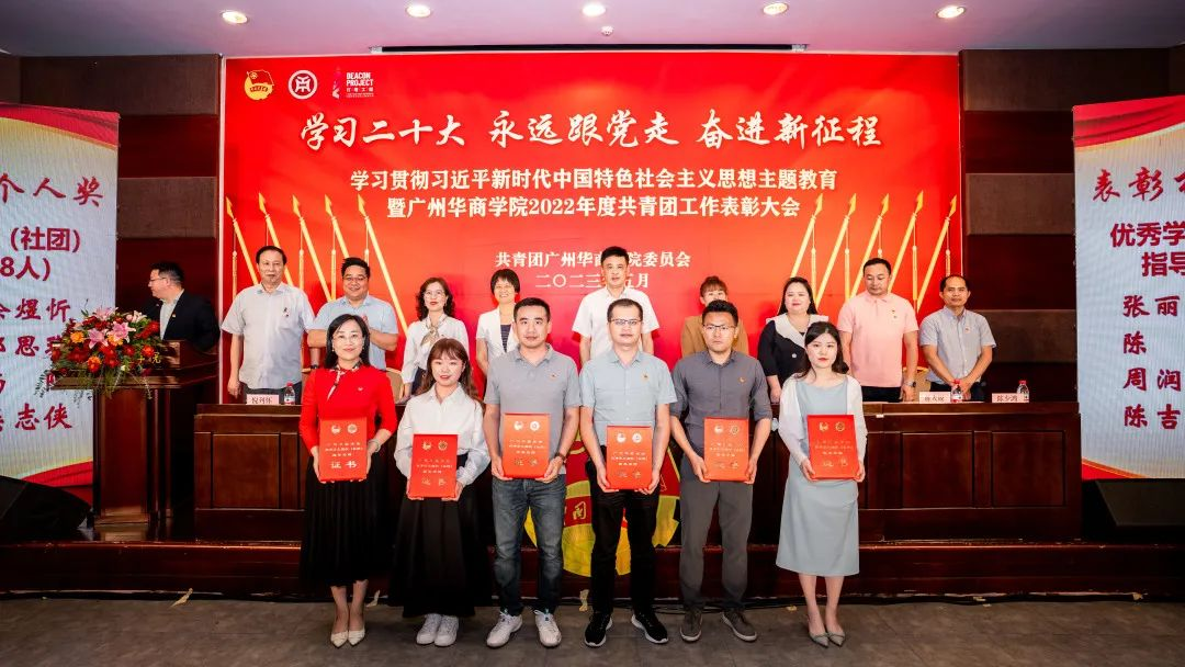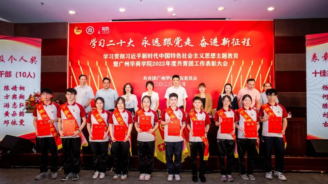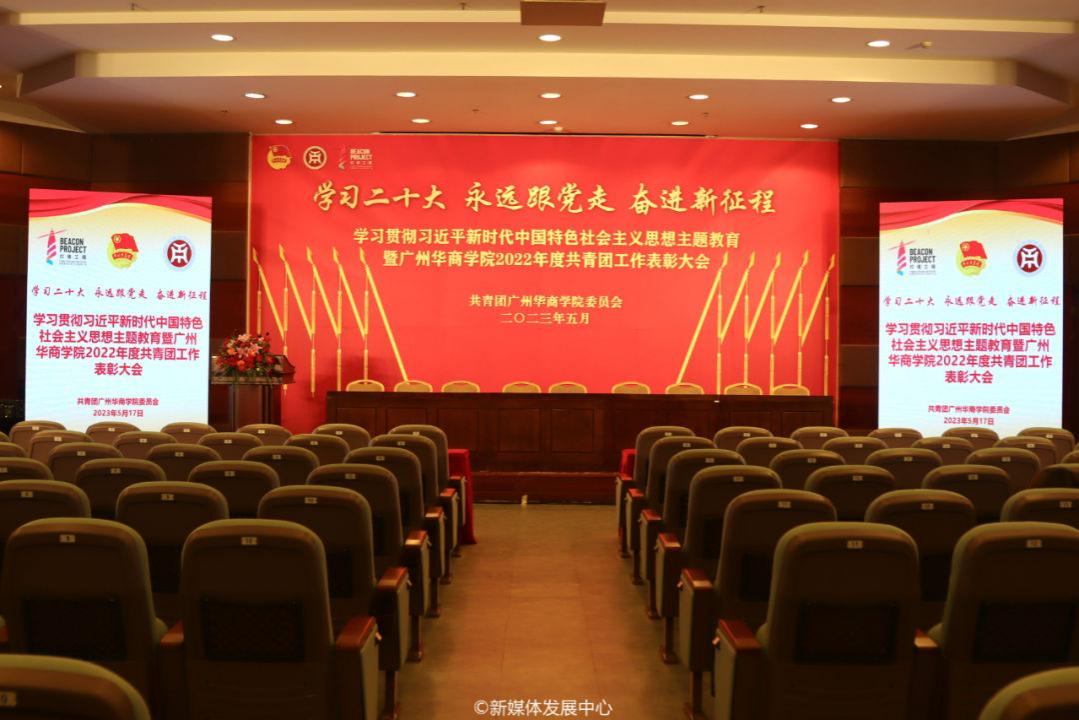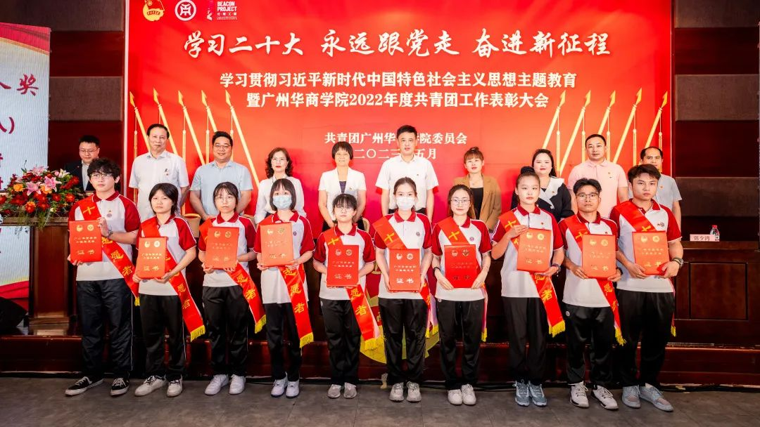 为深入学习贯彻党的二十大精神,全面领会习近平总书记关于青年工作的重要思想,引导广大华商青年厚植家国情怀、涵养进取品格,以习近平新时代中国特色社会主义思想凝心铸魂,用奋斗姿态激扬青春,不负时代、不负韶华,努力成长为有理想、敢担当、能吃苦、肯奋斗的新时代好青年。在学校党委领导下,校团委在国际会议中心4楼报告厅举行“学习二十大,永远跟党走,奋进新征程”学习贯彻习近平新时代中国特色社会主义思想主题教育暨williamhill中国官网2022年度共青团工作表彰大会。本次表彰大会采取线上和线下相结合的方式,增城校区设主会场,四会校区设立分会场。大会由校团委陈刚书记主持。