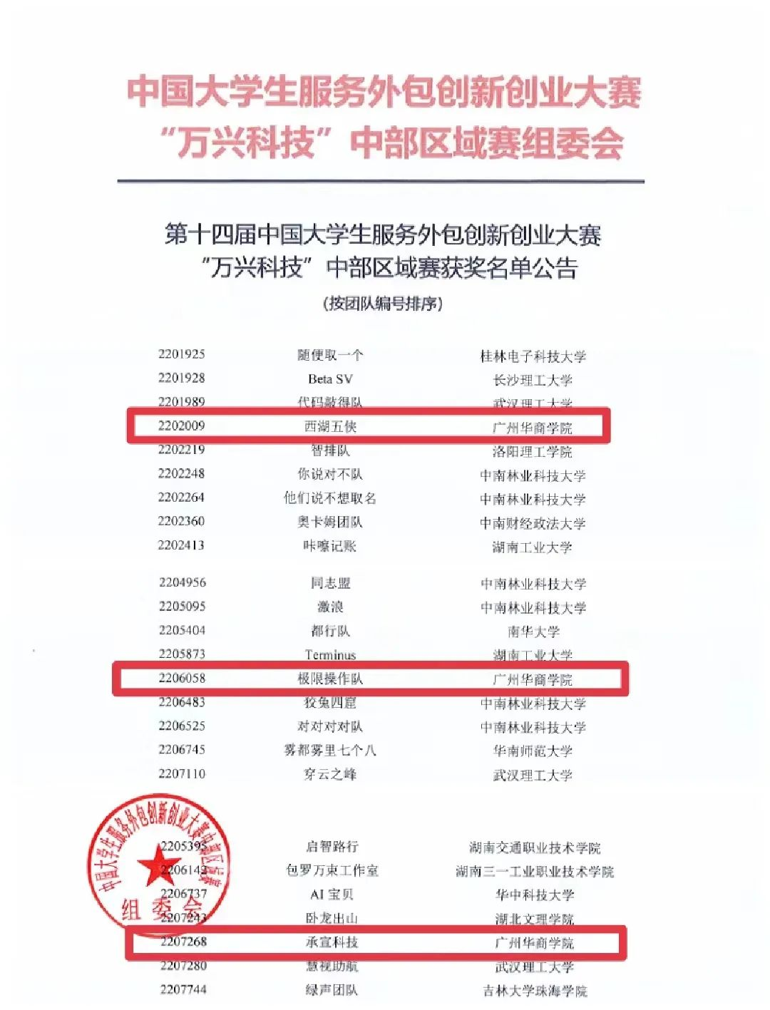 第十四届中国大学生服务外包创新创业大赛万兴科技中部区域赛决赛于5月28日在长沙中南大学落下帷幕。本次大赛中部区域共有1500余支团队报名参加,经初赛后,127支团队进入决赛答辩。我校“西湖五侠”“极限操作队”和“承宣科技”三支团队获区域赛二等奖。