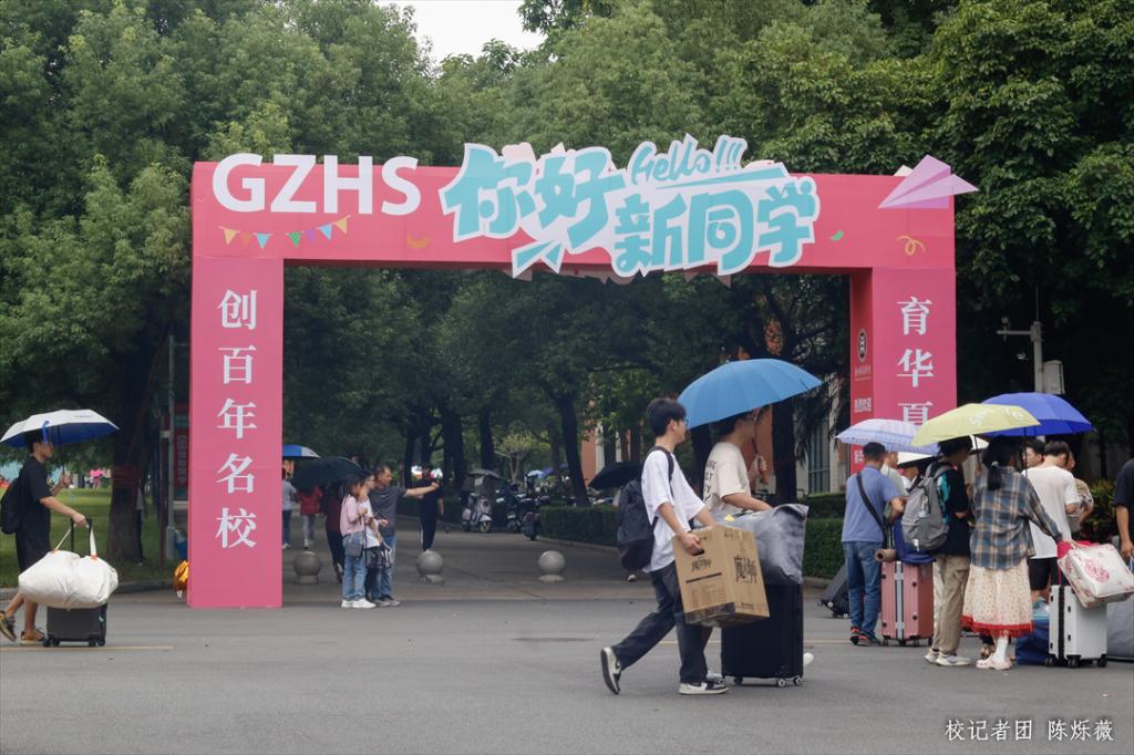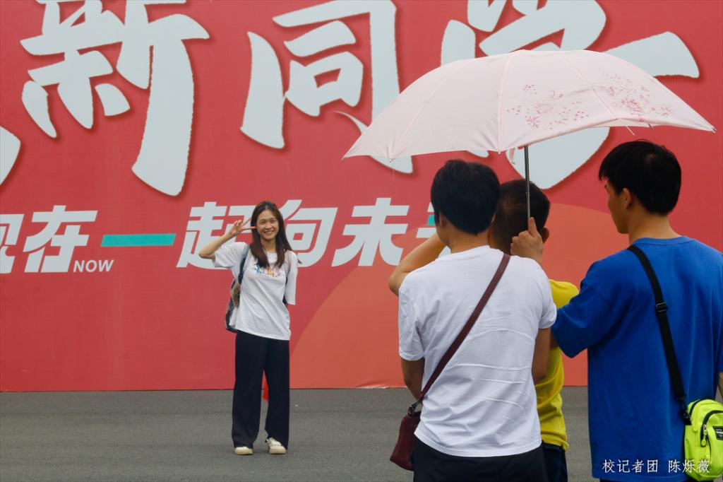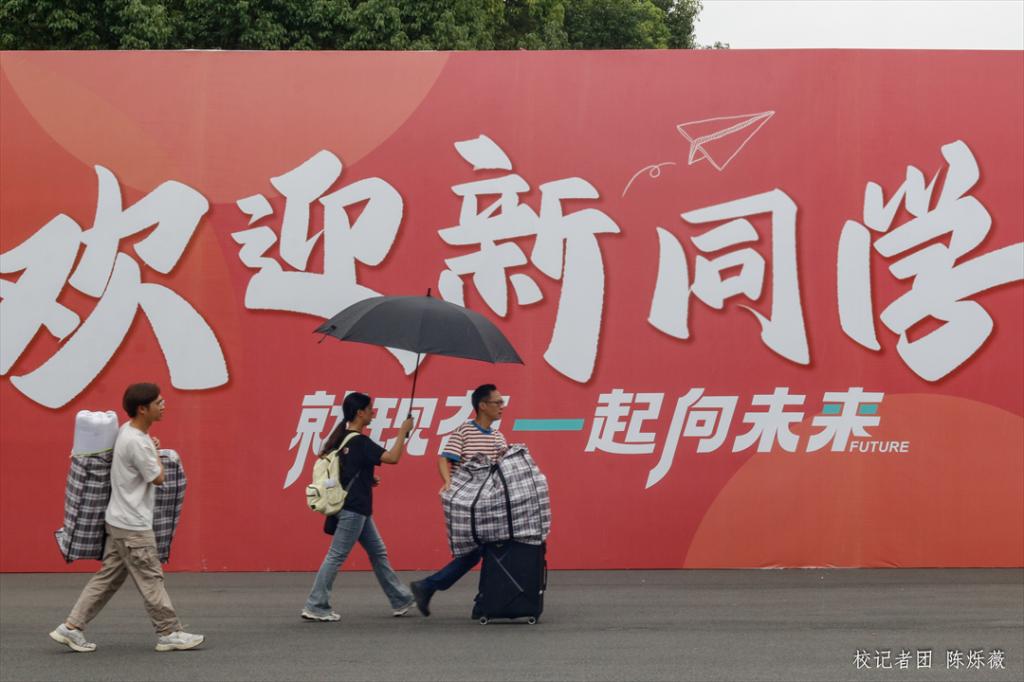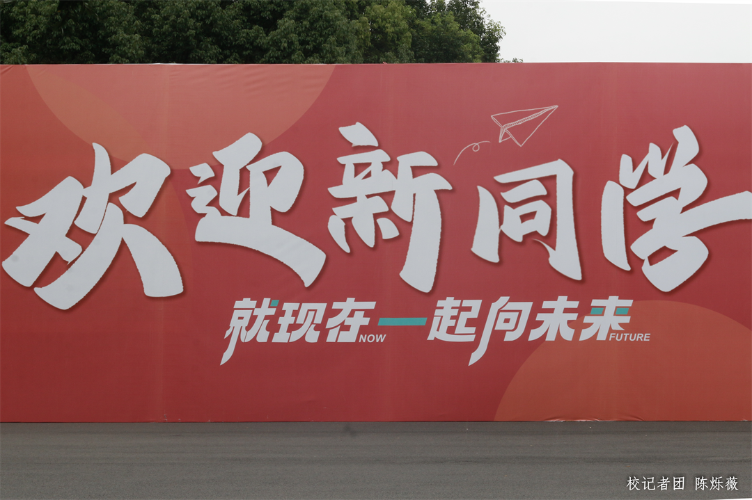 学校在校道、图书馆旁设立的迎新接待点,校园里赏心悦目的迎新标语,穿梭不停的迎新专车,都在展示学校对新生到来的满满期待。