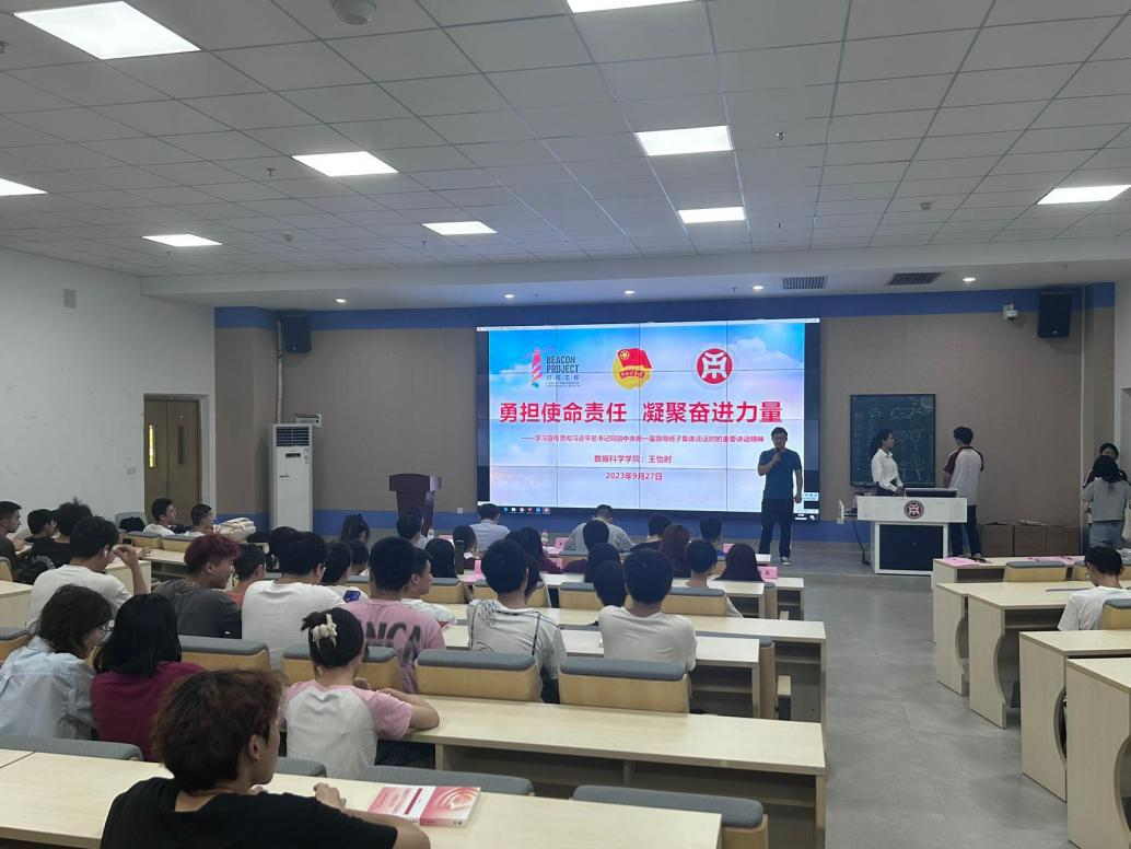 数据科学学院团委书记谢嘉希、学生会指导老师王璐带领大家共同深入学习领会习近平总书记同团中央新一届领导班子成员集体谈话精神。团课中,谢书记强调作为学生团员青年,要坚定理想信念。要学深悟透习近平新时代中国特色社会主义思想,努力掌握这一科学思想的世界观和方法论,善于运用贯穿其中的立场观点方法分析问题,在知行合一、学以致用上下功夫,保持守初心的定力。团委副书记王怡时在四会校区带领学生团员学习习近平总书记在同团中央新一届领导班子集体谈话时的重要讲话精神以及团的十九大精神。他呼吁大家要加强自身建设,发挥好模范带头作用,推动共青团事业和青年工作实现新的更大发展。必须紧紧围绕党的二十大确定新时代新征程党的中心任务来开展工作,把握方向,奋发有为。