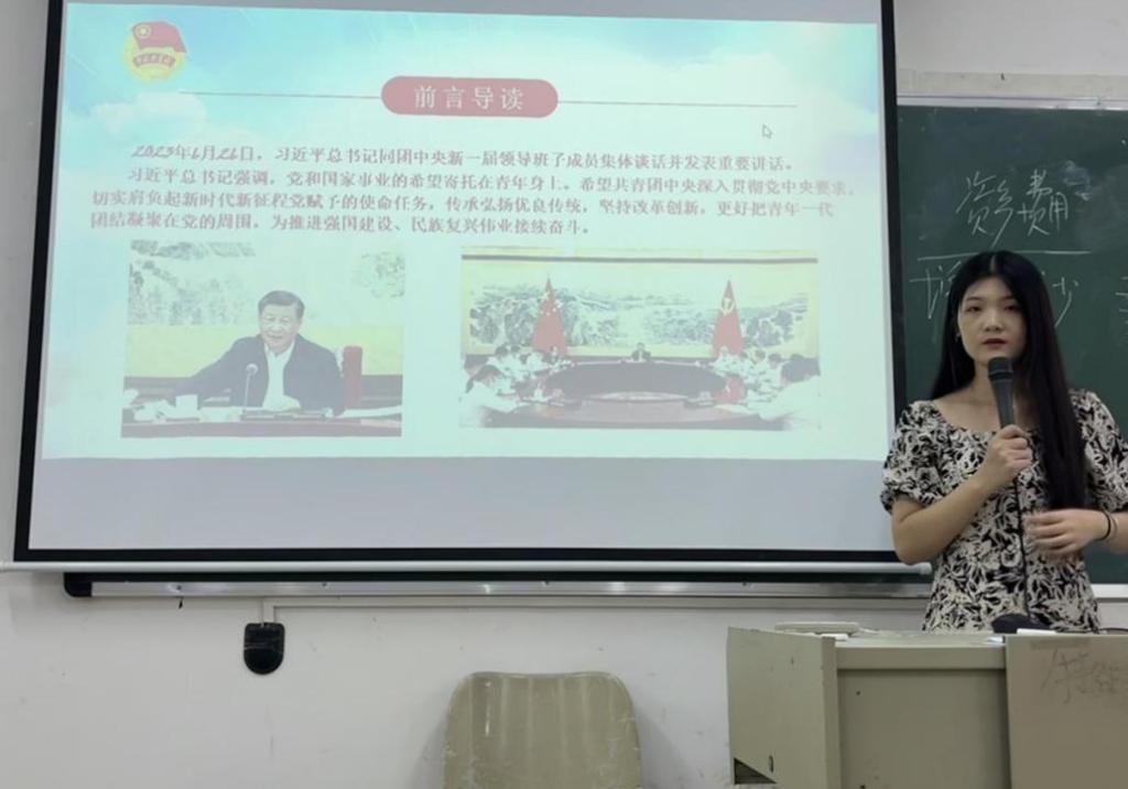 为认真学习习近平总书记在同团中央新一届领导班子集体谈话时的重要讲话精神,加强青年学生的思想教育,厚植爱党、爱国、爱社会主义的情感。9月,管理学院团委面向双校区青年团员开展“学习习近平总书记同团中央新一届领导班子成员集体谈话时的重要讲话精神”主题团课。团委书记徐煜忻号召管理学院的团员青年要在日常生活中刻苦学习、积极进取,坚定理想信念、培育高尚品格、练就过硬本领、勇于创新创造、矢志艰苦奋斗,毫不动摇地听党话、跟党走。罗玉凤副书记强调,同学们要认真深刻领会其中的丰富内涵和精神实质,旗帜鲜明讲政治,不断提高政治判断力、政治领悟力、政治执行力,以青春奋斗姿态挺膺担当。学院团委副书记魏巍指出,在全面贯彻落实党的二十大精神开局之年,习近平总书记对共青团工作发表重要讲话,有重大深远的战略考量,同学们要始终走在坚定拥护“两个确立”、坚决做到“两个维护”的前列,立志做有理想、敢担当、能吃苦、肯奋斗的新时代好青年。
