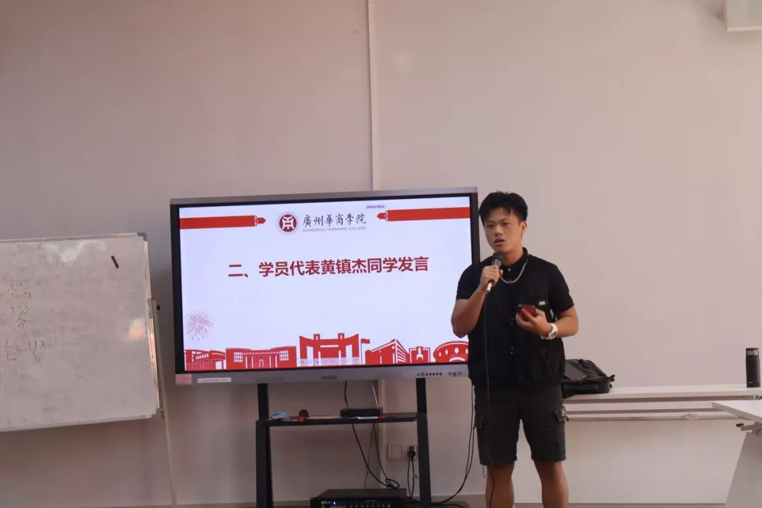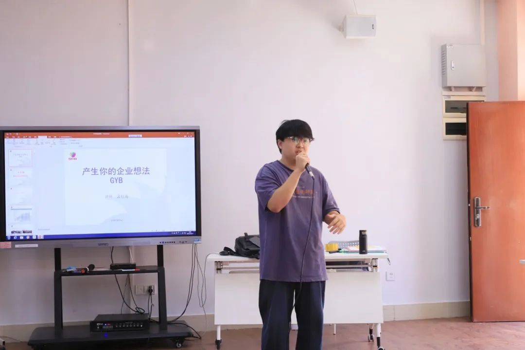 学员代表黄镇杰在开班仪式上发言。他认为,GYB创业培训班能培养学员们的创业思维,引导大家选择适合的创业项目,提高创业素养,了解必备的创业条件以及政府相关的创业政策。同时,他向大家分享了自己的创业经验,在创业的过程中,他结识了志同道合的同伴和专家,在不同思维的碰撞中,不断提高自己的创业能力,并找到了适合自己的创业方向。黄镇杰同学表示,GYB培训虽然短暂,但也是充实的。他希望和学员们一起学习,在培训中思考如何将所学知识与未来职业规划相结合,不断挖掘尚未发现的创业潜力,并应用到未来的创新创业竞赛和创业实践中。