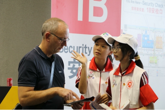 21级英语8班志愿者黄銮琪:在服务期间,从一开始的不敢开口到后期主动去询问需要帮助的外国友人,热情地与他们交流,为他们指路以及提供其他的帮助。很感谢学校给予的一个机会能够让我去锻炼自我,提高与人沟通的能力。我们以优质的志愿服务展示了华商青年志愿者的风采,展现了广交会对外商的友好欢迎,希望更多的志愿者加入到我们的行列中来。