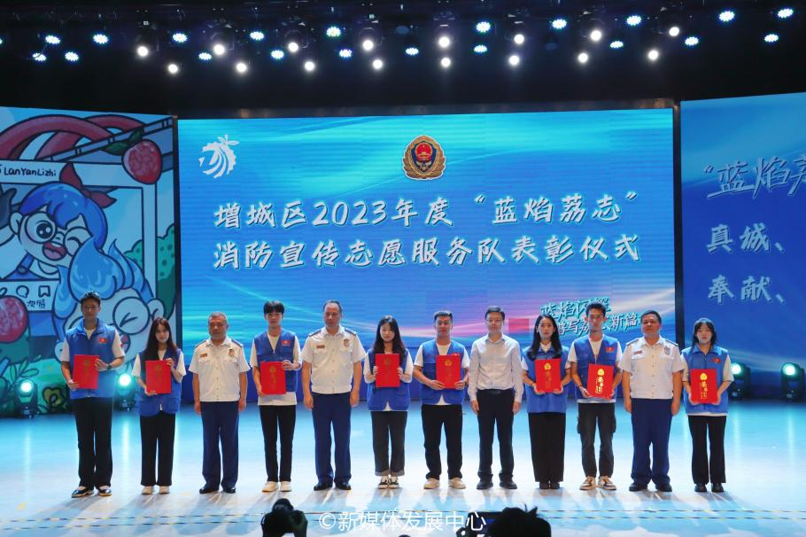 区消防救援大队大队长刘飞宣读《增城区“蓝焰荔志”精英宣讲团活动方案》并为宣讲团成员颁发聘书。他强调,宣讲团是传递消防安全知识的重要力量,要求成员们以高度的责任感和使命感,将消防安全知识普及到每个家庭。