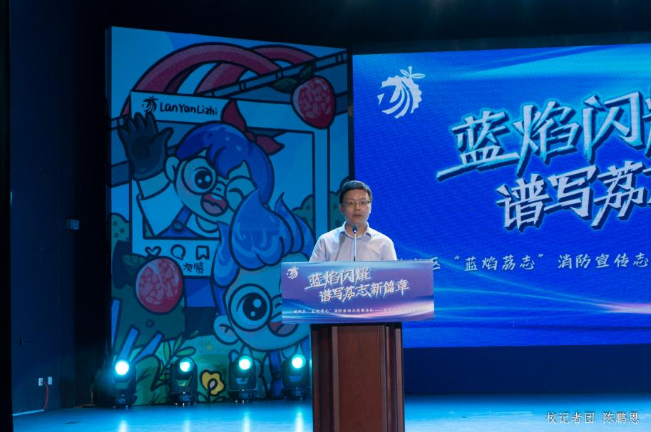 活动中,学校吕峻闽副校长代表学校发言,他表示“蓝焰荔志”精英宣讲团,是增城区消防安全宣传教育的重要载体,是推动公共安全意识深入人心的有力举措。吕峻闽副校长高度称赞“蓝焰荔志”精英宣讲团成员以满腔热情和强烈的社会使命感,积极投身消防安全知识的普及工作,展现了当代青年的责任与担当。