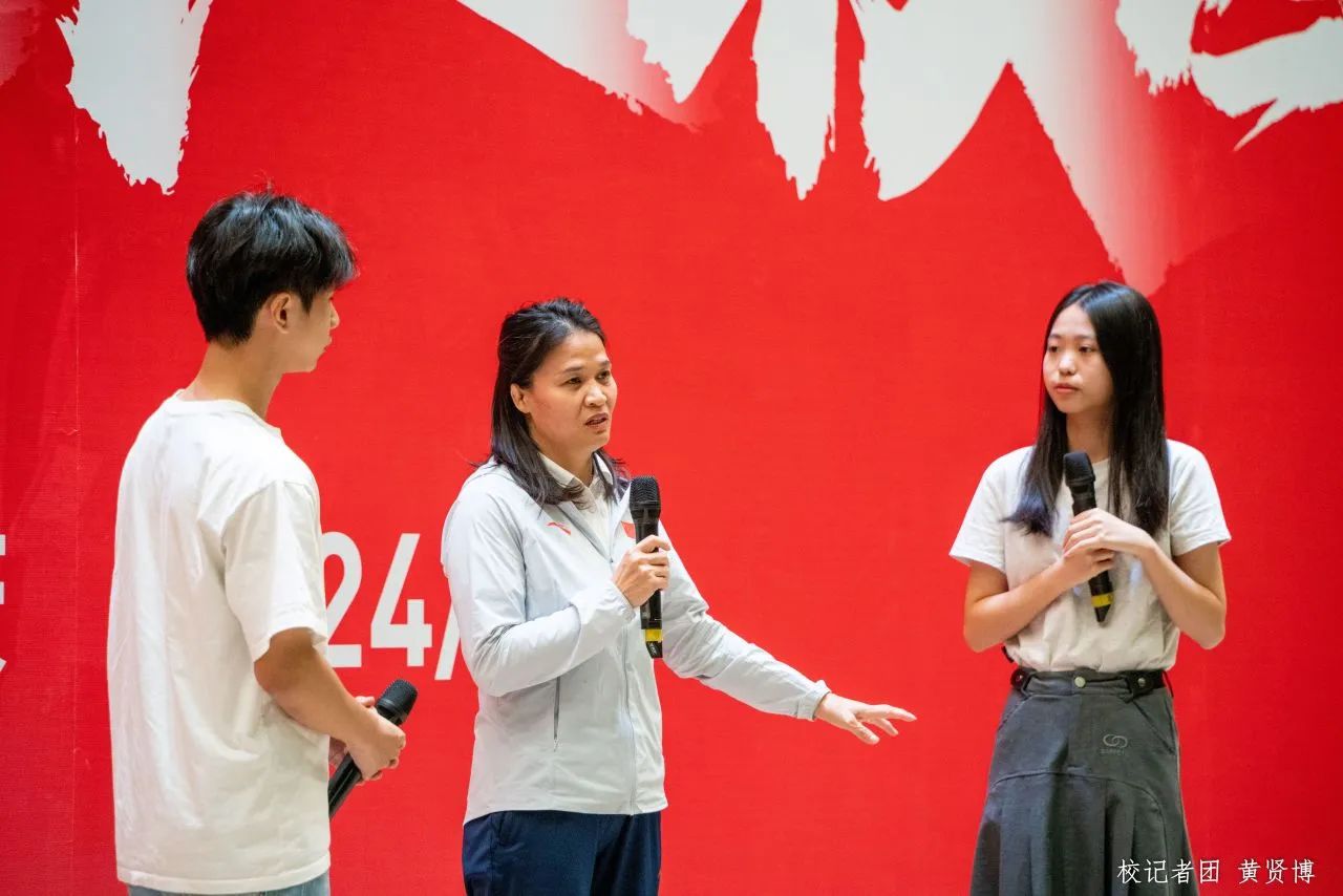 奥运冠军冼东妹女士以“坚定信念,成就梦想”为主题,用自己的职业生涯激励全体师生。冼东妹女士从四年级开始练习田径,之后进入体校。1988年,她从田径转练摔跤,同年进入省队,参加全国女子摔跤比赛获得第六名,其间受伤却仍坚持下来。1990年摔跤队解散后,由于柔道进入奥运会项目而被柔道教练看中,于是开始练习柔道。她以师姐为目标,于1992年获得青年赛冠军、成年赛冠军。在柔道生涯里,她多次参加全运会,共获得三届冠军、一届亚军、一届季军,还多次代表中国参加奥运会,夺得两届奥运冠军。尽管她遭受多次伤病且做过多次手术,但凭借着对柔道的热爱和坚定信念一直坚持着。