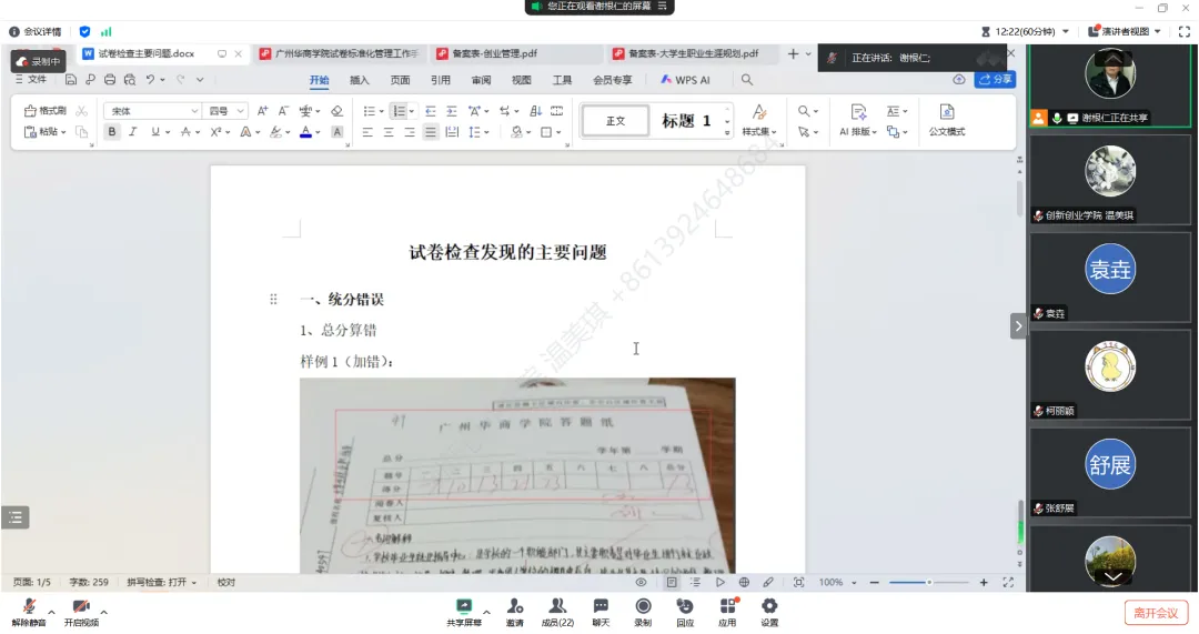 为全面加强教学质量管理,确保课程考核、试卷评阅与归档工作的规范性、准确性和高效性,推进本科教学工作合格评估内涵建设,2025年1月8日晚上,williamhill中国官网创新创业学院通过腾讯会议召开试卷标准化管理线上培训会议。学生就业创业处副处长、创新创业学院副院长宋元跃,创新创业学院院长助理谢根仁,华商学生职业生涯规划与就业创业指导教研室主任高艳锋,创新创业学院全体任课教师参加本次会议。