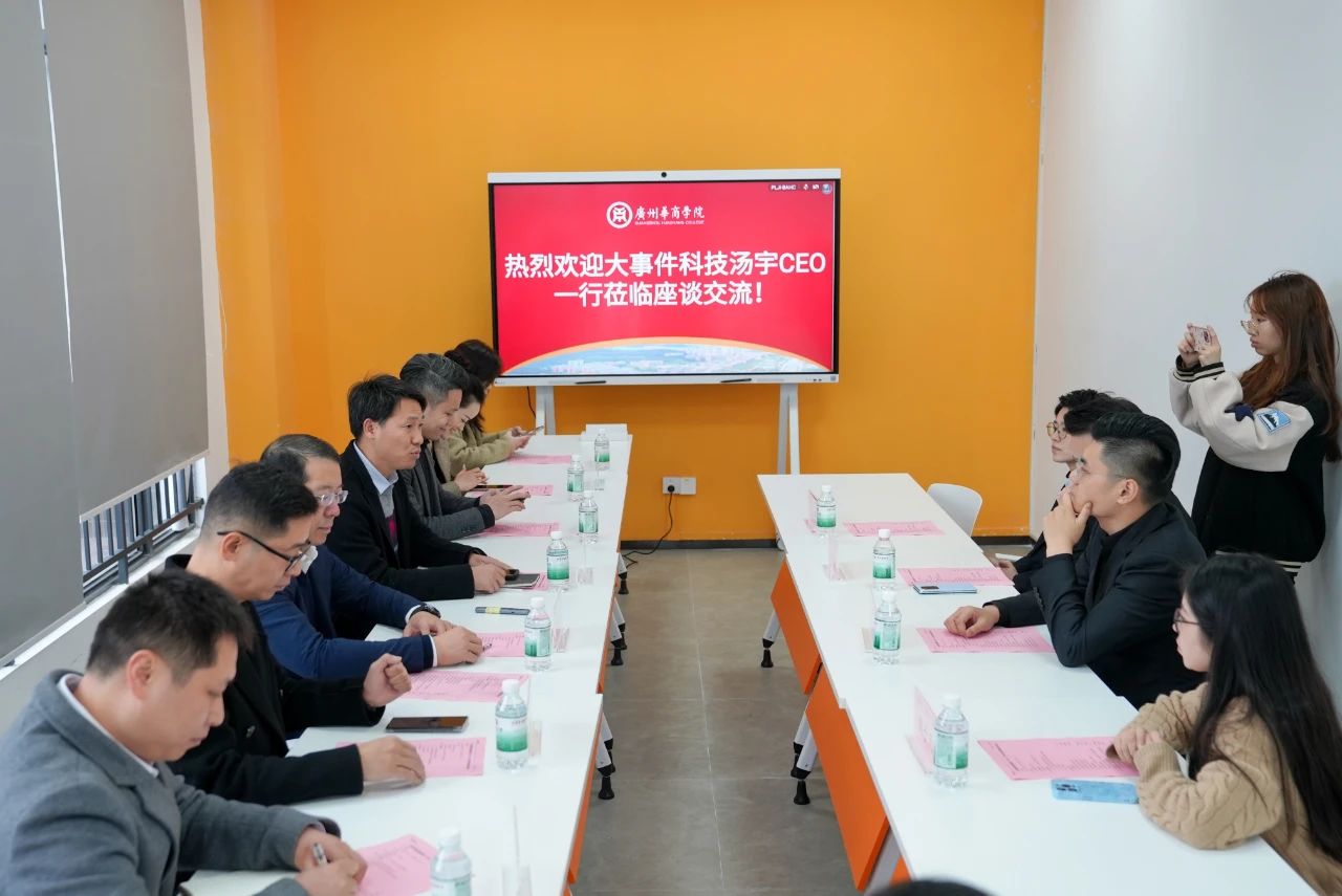在互动交流环节,双方围绕产教融合、校企合作模式创新、专业人才培养等议题展开深入探讨。大事件科技集团的嘉宾们结合企业实际需求,分享了行业前沿信息与实践经验,为学校专业建设与课程设置提供了宝贵建议。学校代表则详细介绍了各学院在专业特色、教学改革及实践教学方面的成果,并表达了进一步深化校企合作的强烈意愿。