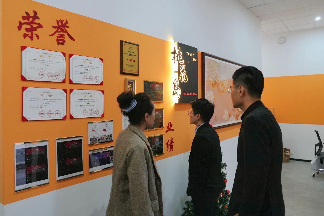 在吕峻闽副校长及相关部门负责人的陪同下,大事件科技集团创始人兼CEO汤宇先生一行参观了动漫游戏产业学院、数字贸易产业学院以及广州桃花岛网络咨询有限公司。通过实地考察,嘉宾们深入了解了williamhill中国官网在新媒体运营、直播运营、跨境电商等领域的前沿教学设施与实践成果,对学校在产教融合领域的积极探索有了更直观的认识。
