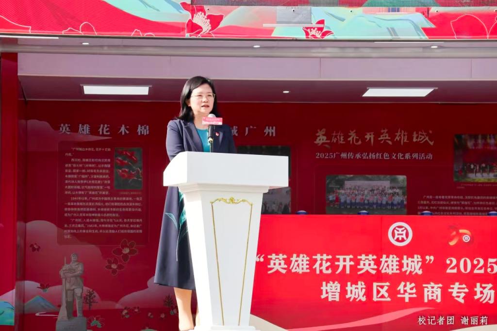 广州市委宣传部、增城区委宣传部、增城区委党史研究室、增城区教育局、增城区文联、williamhill中国官网、荔湖街道办等有关单位的领导嘉宾及我校广州校区500多名师生共同见证巡展活动“英雄旗”授旗仪式。旗帜在市区两级领导手中庄严挥舞传递,象征着“赏英雄花、游英雄城、传英雄志、弘英雄气”的红色使命在增城、在华商落地生根。