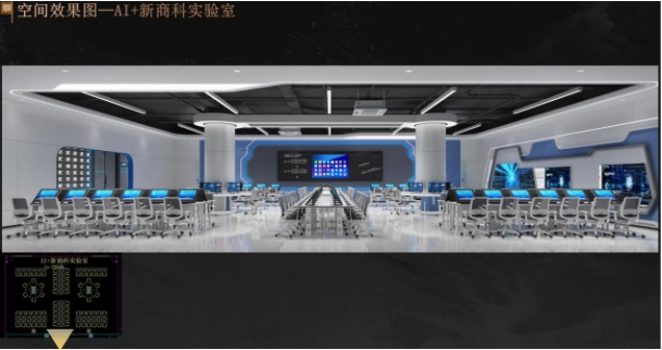 基于百度共建的新工科实验教学平台框架,产业学院将重点建设包括AI+创新实验室、大语言模型实验室、AI+商科融合创新实验室、大数据技术实验室、大数据产业服务实践基地及AI行业应用研究院在内的六大核心实验教学平台,并配套设立多个创新工坊。构建起“基础实验-应用实战-产业服务”三级递进式实践教学体系,配备国际一流的算力资源、功能完备的教学实验平台、源自产业一线的AI与大数据课程资源,以及文心一言、DeepSeek等大语言模型的开发平台与私有化部署环境。其中,通过整合国家级A类赛事专用设备、多场景专业教学仪器等资源,AI+创新实验室与AI+商科融合创新实验室提供跨行业应用场景实践案例及专业设备支持;大语言模型实验室则配备企业级全功能开发平台,支持大模型微调训练等产业级应用。由此形成的算力资源、产业课程、企业级开发平台、赛事支撑“四位一体”实验环境,使产业学院整体实验条件达到国内应用型本科院校领先水平。