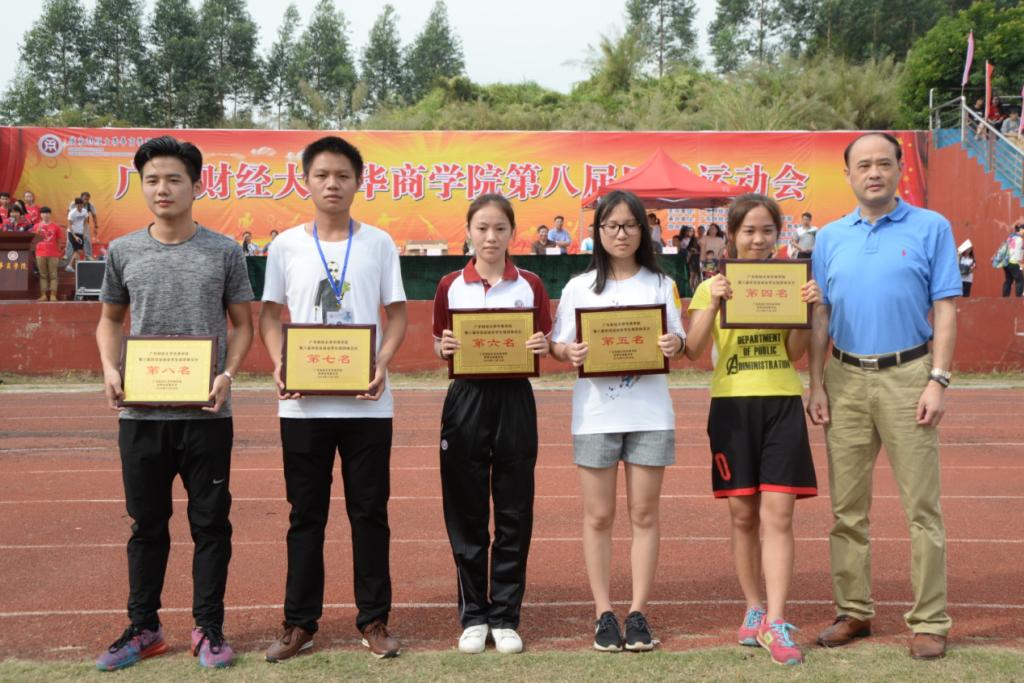 闭幕式上,裁判长徐振文副主任上台宣布运动会成绩。会计学院,经济与金融系,工商管理系,分别以370,263,145.5分分获第一、二、三名。紧接着郭银华副院长宣布校运会精神文明获奖单位,会计学院,公共管理系和经济与金融系荣获该项荣誉。苏宁书记为八大院系和精神文明获奖单位颁奖。