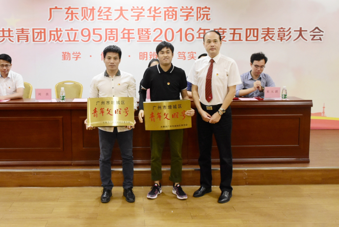 大会对第三届“大智慧杯”全国大学生金融精英挑战赛获奖团队;2016-2017年度广东省优秀学生会、优秀学生社团、优秀学生干部;2016年广东省大中专学生志愿者暑期文化科技卫生“三下乡”社会实践活动优秀单位、优秀团队、优秀个人;广东省“南粤长城杯”电视网络演讲比赛获奖个人;第十一届广东大中专学生校园文体艺术节获奖团队;增城区“青年文明号”获奖团队;院级五四红旗团总支;先进基层学生会;志愿者工作先进集体;优秀学生社团;优秀团支部;优秀团务工作者;优秀学生组织(社团)指导老师;十佳共青团干部;十佳共青团员;十佳志愿者等进行了表彰。