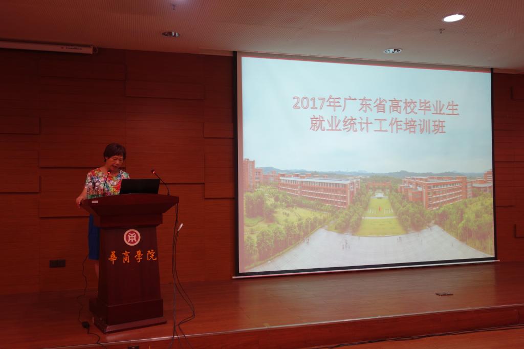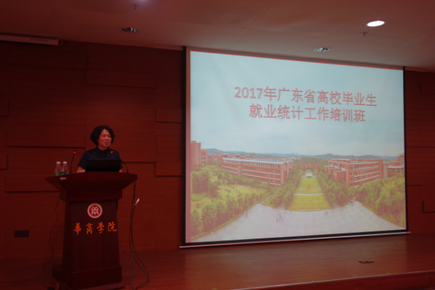 5月26日上午,由广东省教育厅主办的2017年广东省高校毕业生就业统计工作培训班在广东财经大学华商学院正式启动,华商学院已连续两年承办此项培训工作。广东省教育厅高等学校毕业生就业指导中心副主任刘卓、副科长刘琨,广东财经大学华商学院副院长杨丽娟,广东海洋大学教务处副处长张光亚,广东水利电力职业技术学院招生就业处副处长方焕新,广东省高等学校毕业生就业促进会相关领导,以及全省141所本、专科高校负责就业工作的老师共160多人参加了培训班。