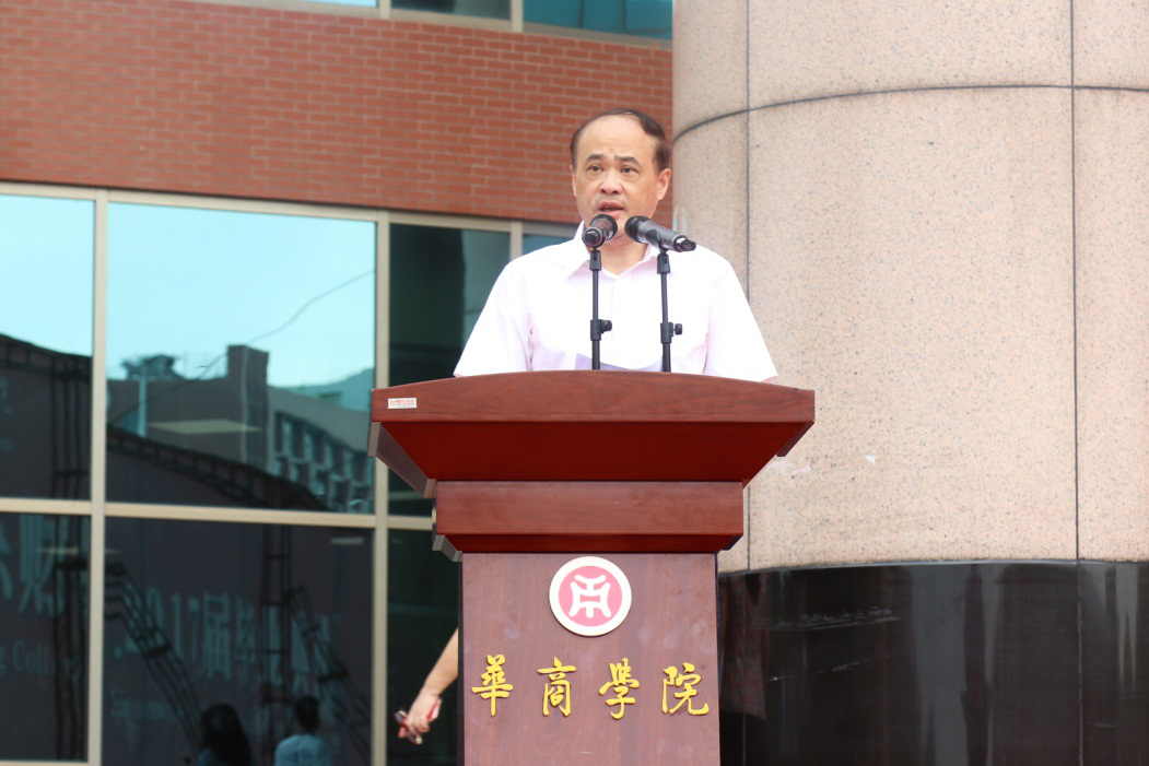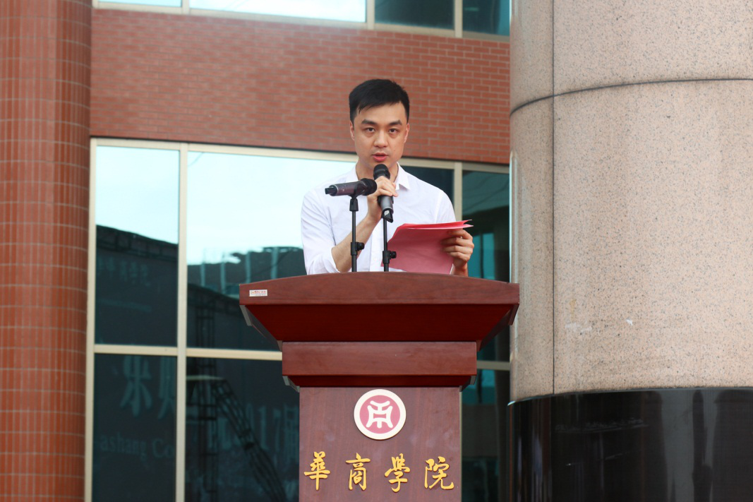 随后,华商学院执行董事廖智威先生发表致辞。他首先对全体华商学子、教职工,以及关心学生们成长的家长们表示诚挚的问候以及深深的谢意。华商一点一滴的进步都凝聚着每一位教职工和学生的汗水,华商的进步以及发展,每一位华商学子以及教师都是最好的见证者。同时他也希望同学们能在梦想的道路上顽强拼搏,成就人生辉煌。最后他道,母校永远是同学们人生旅途的港湾以及坚实后盾,同学们在离校之后,也要常回家看看,支持以及帮助母校的发展。