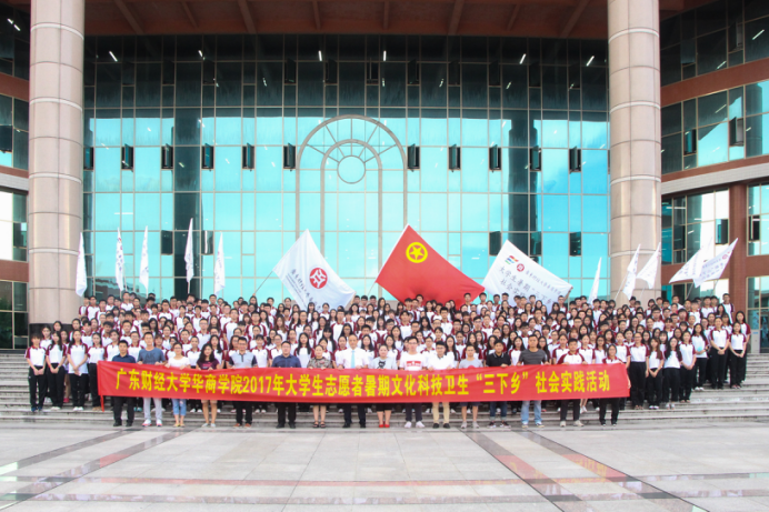 6月29日下午,广东财经大学华商学院2017年大学生暑期志愿者“三下乡”社会实践活动启动仪式在励志楼C408举行。学院党委苏宁书记,党委委员、团委许娜书记,信息工程系党总支蒋大锐副书记,学院团委刘苗副书记、陈刚副书记,学院团委常委黄剑年老师、宋元跃老师以及各二级院系团总支书记、学生会指导老师等出席启动仪式,全院2017年暑期实践服务团队队员及大学生代表共计400余人参加启动仪式。