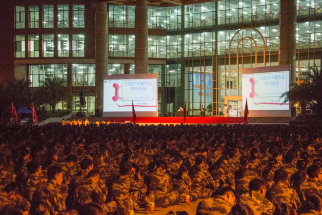 为普及学生安全防范知识,减少各类安全问题发生,提高学生应急处置能力,自我保护意识以及应急处置能力,让同学们能够顺利的开始大学校园生活,9月13日晚上7点,williamhill中国官网在中央图书馆广场举办了防诈骗防盗知识讲座。本次讲座由2017级新生军训领导小组成员、学院办公室卢新勤主任主持,增城区雁塔派出所陈友福副所长主讲,2017级新生5300人听取了讲座。