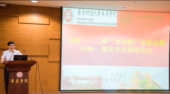 4月28日上午,广东财经大学华商学院(简称“华商学院”)和广东省管理会计师协会(简称“协会”)共同举办的GAMA “双导师”见面会暨GAMA一期奖学金颁奖仪式在华商学院图书馆报告厅顺利举行。出席的导师包括:协会会长林斌教授,名誉会长王华教授,监事长胡玉明教授,副会长、广东飞翔达科技股份有限公司财务总监陈福彬先生,会长助理蔡祥副教授、漆江娜副教授、聂新军副教授,广东金融学院会计学院院长文芳教授、华南师范大学经济与管理学院刘善敏副教授,致同会计师事务所(特殊普通合伙)合伙人付细军先生,普华永道中国税务及商务咨询总监康淑敏女士,广东宏升投资管理有限公司总经理刘乐仁先生,广东省人民医院审计处处长郑阳晖女士等。会议由华商学院会计学院许娜副院长主持,华商学院副院长兼会计学院院长陈美华教授出席了活动并致辞。