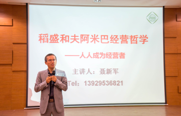 在“GAMA大讲堂”环节,广东省管理会计师协会会长助理、华南师范大学经济与管理学院聂新军副教授作“稻盛和夫阿米巴经营哲学—人人成为经营者”的主题分享。聂教授通过稻盛和夫经营京瓷和日航的成功经验分享了以下几点:一、一个人拥有宽广的胸怀,高远的格局,人生发展的空间也更广阔;二、懂得自我控制和自我管理的人学习和工作的效率更高;三、拥有积极的思维方式更容易获得幸福感;四、“稻盛和夫的《成功方程式》人生的结果=正确思维方式x热情x能力”,将自己当做一个经营者,成就自己的事业和生活。