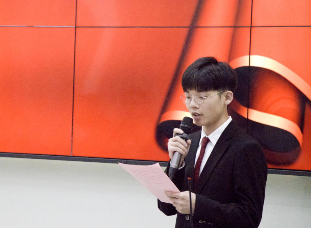 首先进行的是“文明、安全、纪律”主题演讲比赛决赛。11位参赛选手根据赛前抽签决定的顺序,依次上台发表演讲。他们结合华商校园的实际案例,以及自己的所见所闻来表达自己在文明、安全、纪律的认识,非常具有感染力和号召力,引发一次次的掌声和喝彩。