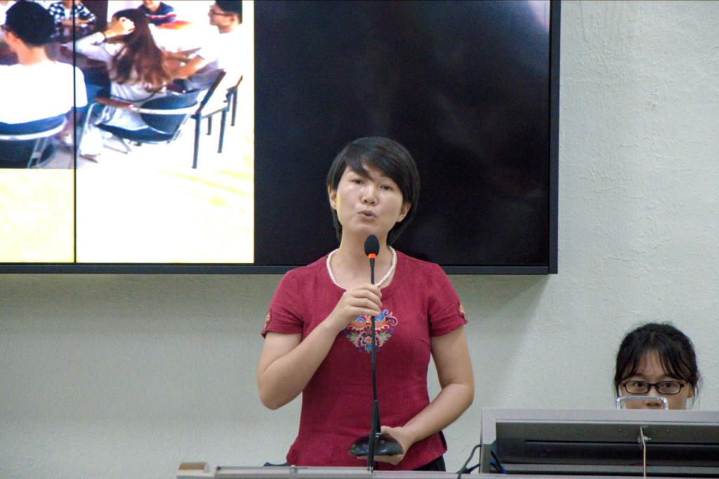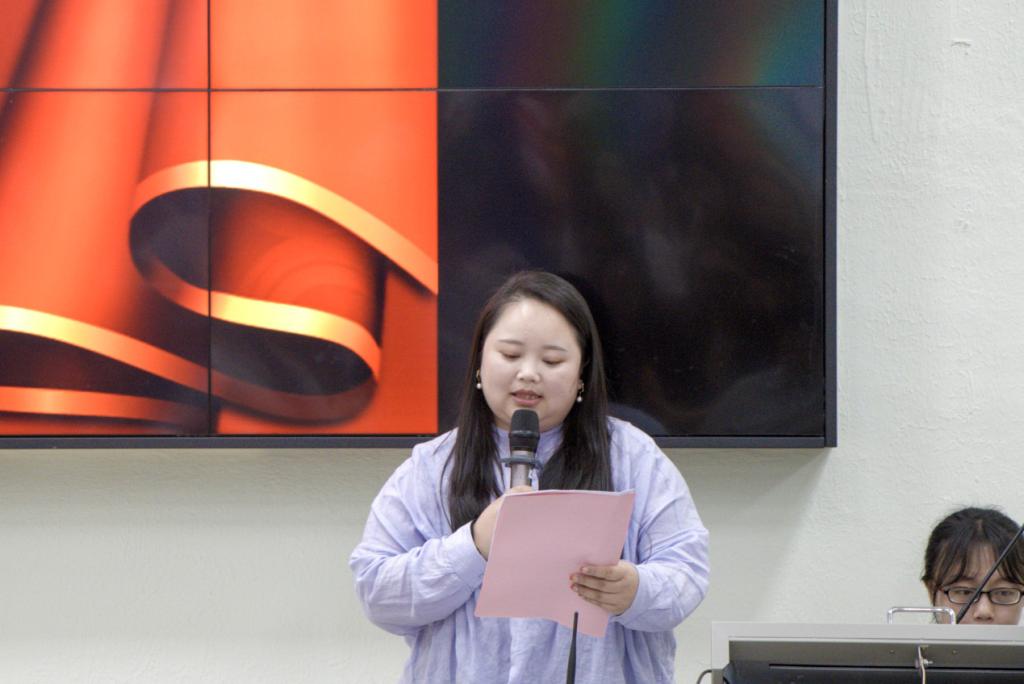 文学院艺术与设计系彭博娜副主任作交流发言。她用PPT详细展示了艺术与设计系在教育月开展的各项活动和取得的成效,认真地总结了本次活动的经验和不足。她表示文明、安全、纪律方面的工作还需要常抓不懈。