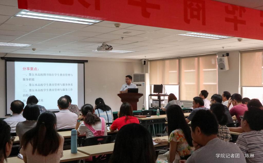 学生处黄国富副处长从墨尔本高校图书馆的职能入手,分享了澳洲高校图书馆在学生教育管理与服务的作用,学生教育管理与服务体系及其特点等,并提出了自己的建议。