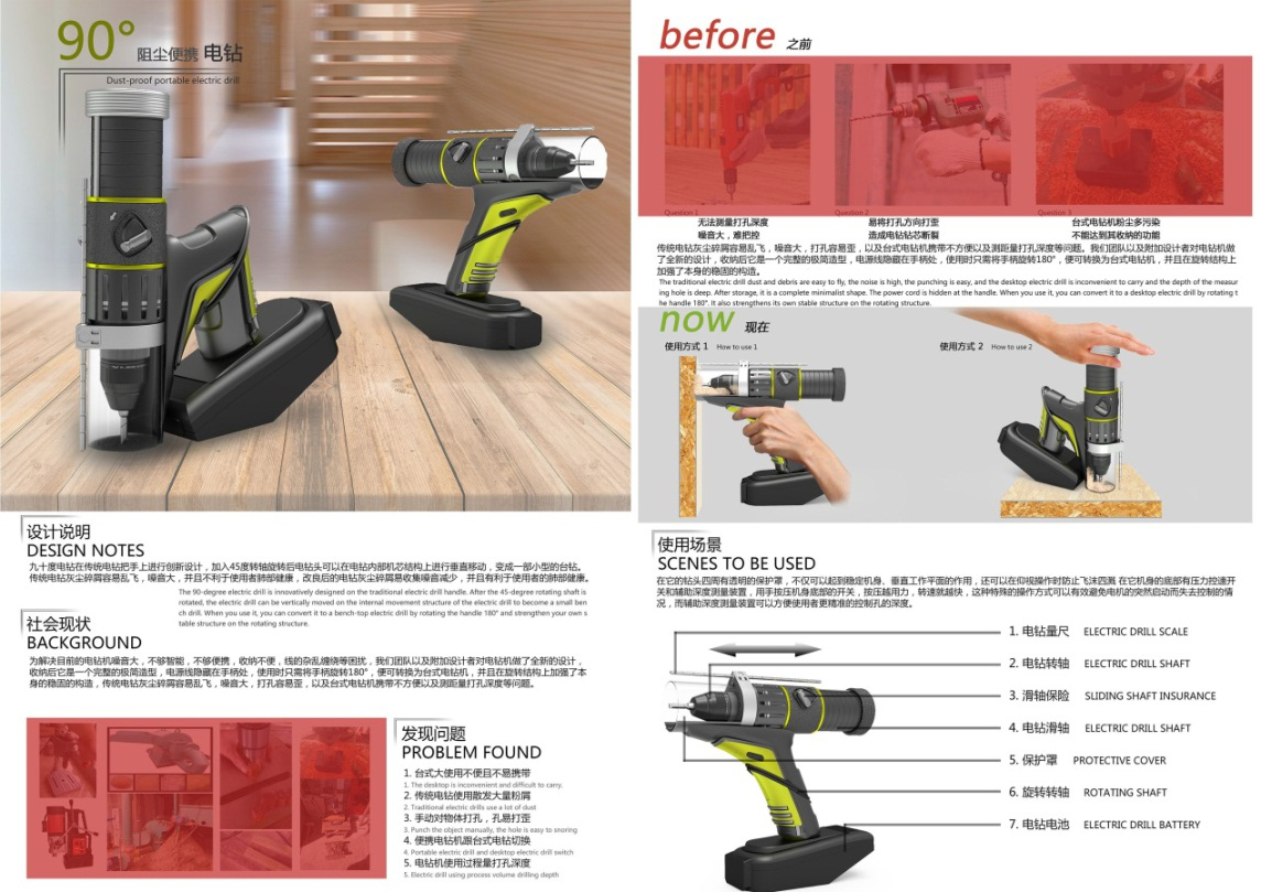 金奖作品《90°阻尘便携电钻》