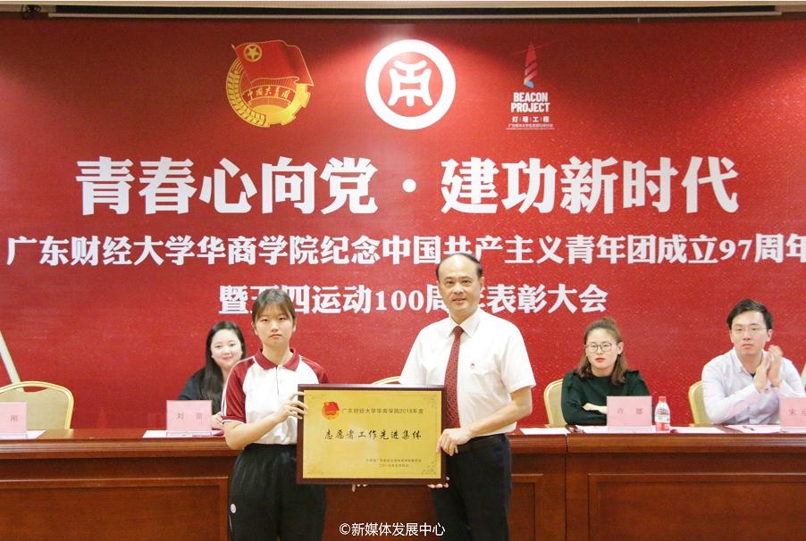 伴随着庄严的团歌,广东财经大学华商学院纪念中国共产主义青年团成立97周年暨“五四”运动100周年表彰大会圆满结束。