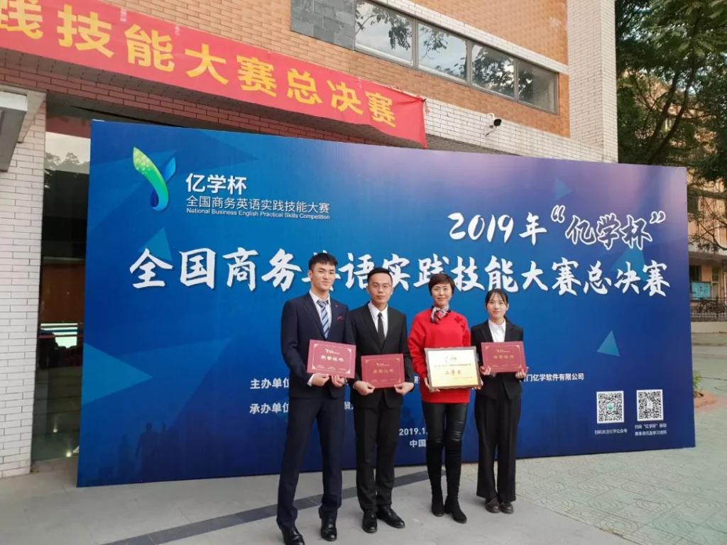 我校学生在2019年“亿学杯”全国商务英语实践技能大赛中取得二等奖,同时,韦俊杰同学荣获优秀选手称号。