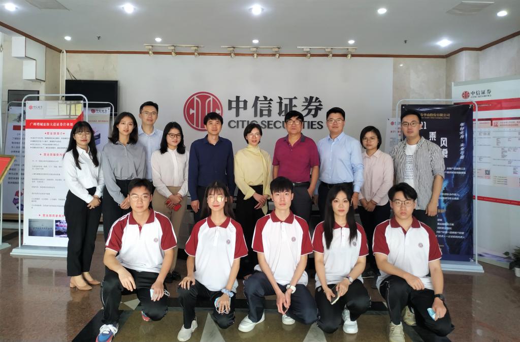 中信证券营业部联席负责人朱晓,团队负责人陈子毅,市场总监曾玉铮,业务总监黄金生对williamhill中国官网一行的到来表示欢迎。双方也就金融专业人才培养、校外实践基地建设、专业活动赛事、学生实习就业等方面进行了深入的交流。