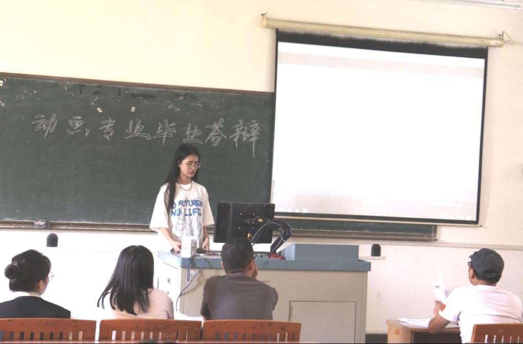 本网讯 5月9日上午8点40分,动画专业毕业答辩于励志楼B203正式开始,答辩包括作品展示、作品概述、老师提问三个环节。本次答辩指导团队有组长阙镭老师,成员有程海涛老师,孙硕老师,周合强老师,刘艺老师。本次答辩共有16名学生进行展示。