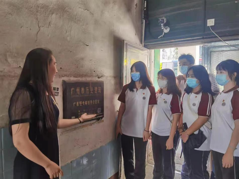 现在所看到的广东妇女解放协会旧址保存了原有的风貌,虽然显得有些残破,但门口墙上的那块石碑证明着协会在历史上曾经发挥过的伟大作用。课程组老师于丹丹在这块石碑前详细介绍了这段历史,也对广东妇女解放运动对全国女性解放以及日后中国男女平等的政策影响等做了讲解。