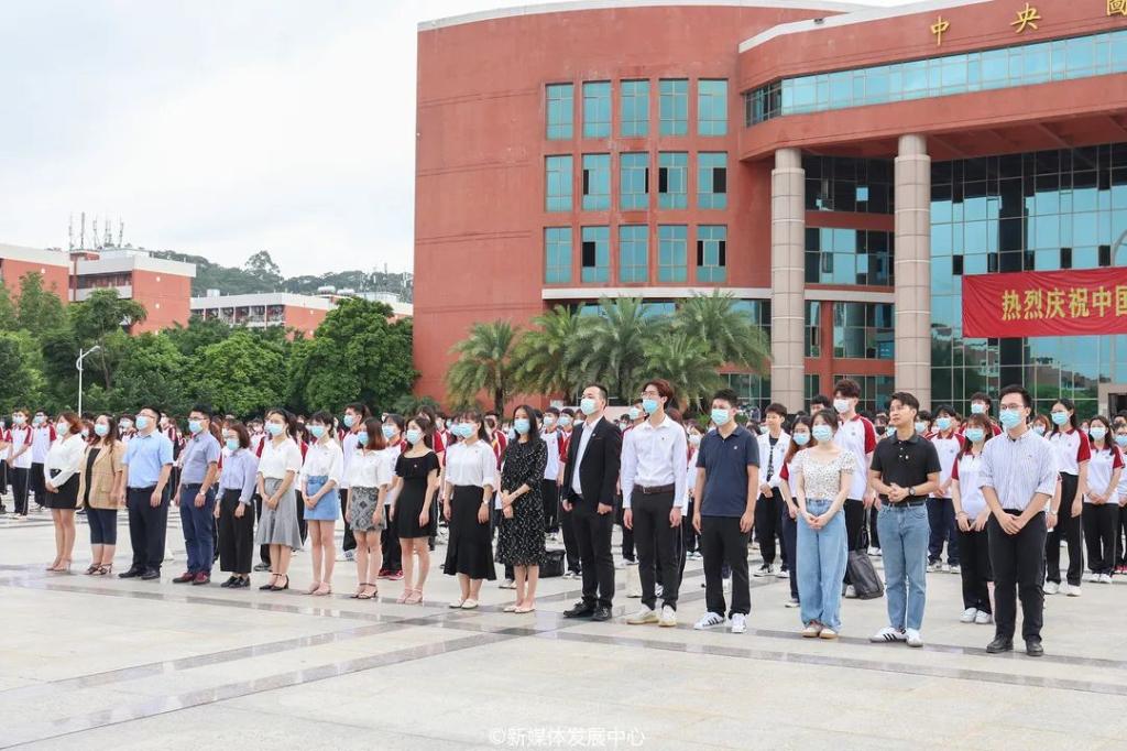 百年征程波澜壮阔,百年初心历久弥坚。2021年7月1日上午7时,为热烈庆祝中国共产党成立100周年,将党史学习教育推向新高潮,培育华商人不忘初心、牢记使命的信念,我校隆重举行升旗仪式。郭银华执行校长、校党委苏宁书记、支戈壁副校长、校党委副书记王锦秀副校长、张捷副校长、陈美华副校长、程辛荣副校长、韩兆洲副校长、王力东副校长、学工部许娜部长、校团委刘苗书记、校团委陈刚副书记、校团委老师、各院系团总支书记、以及校级学生组织代表、各二级院系学生代表近700人统一身着正装和校服,党员同志佩戴党员徽章、共青团员佩戴团徽,精神饱满,情绪高昂,参与此次升旗仪式,庄严献礼党的百年华诞。