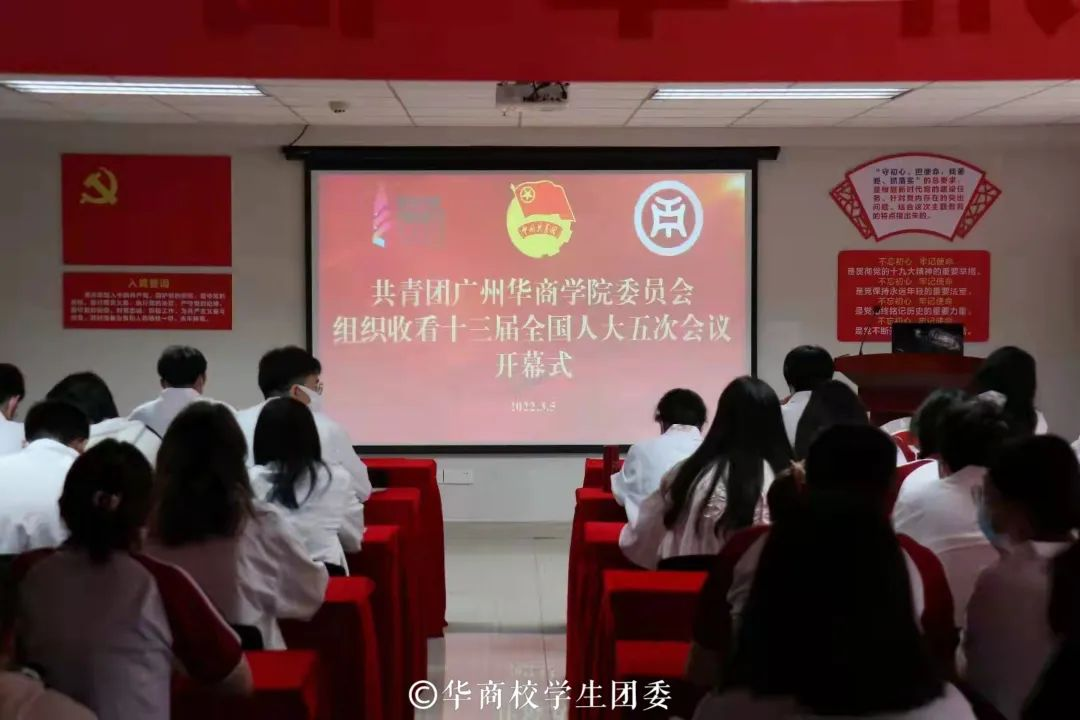 为深入开展好两会精神宣讲,持续引导华商青年学子学习两会精神,激发报国热情,进一步统一思想,凝心聚力,扎扎实实做好各项工作,以实际行动迎接党的二十大胜利召开及建团100周年,学校团委于3月5日8:50组织师生代表集体收看十三届全国人大五次会议开幕式。同时,其余师生青年亦热切关注两会动态,纷纷通过网络、电视、广播等媒体收看收听“两会”开幕式及相关报道。“两会”成为青年学子热议话题。