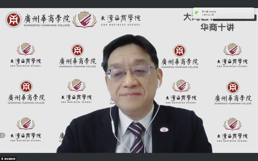 大湾区商学院校长陈志辉教授表示本次活动将给大家提供高质素师资、社会网络、学术平台及终身学习基地。华商教育集团副董事长兼总裁、粤港澳大湾区青年职业发展促进会创会主席廖伊曼女士提及,希望通过系列讲座能够促进整个粤港澳大湾区科创人才培养与交流。