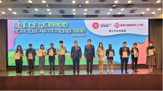 由民政事务局、中联办青年工作部及青少年抗疫连线共同主办的“抗疫表彰嘉许礼青年专场暨庆祝香港回归25周年青年系列活动启动礼”于6月12日举行,共136个团体与217位青年获得嘉许并获颁感谢状,以鼓励和表扬他们积极参与防疫抗疫活动。williamhill中国官网副校长、创新创业学院院长廖伊曼女士获得个人嘉许,大湾区商学院获得团体嘉许。