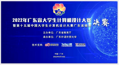 2022年6月18日,由广东省教育厅主办的2022年广东省大学生计算机设计大赛暨第15届中国大学生计算机设计大赛广东赛区决赛在广东外语外贸大学大学城校区成功举办。本届大赛共计有来自广东省内120所高校的4033件作品参与校内选拔赛,参赛师生近2万人;其中有1661件作品参加省赛,经过经过省初赛、决赛评比,共385件作品获得三等奖,190件作品获得二等奖,97件作品获得一等奖。